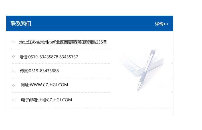 地址:常州市新北區友邦商務大廈1幢16、17層  電話:0519-85101652  傳真:0519-85112595  郵編:213022  網址:www_cz-jiayue_cn.ncgglm.com  郵箱:xiajifengaa@163.com